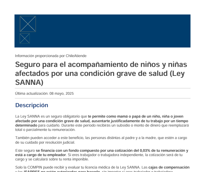 Seguro para acompañamiento de niños y niñas (Ley SANNA)